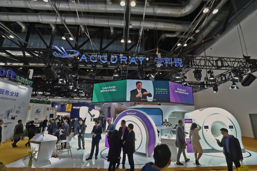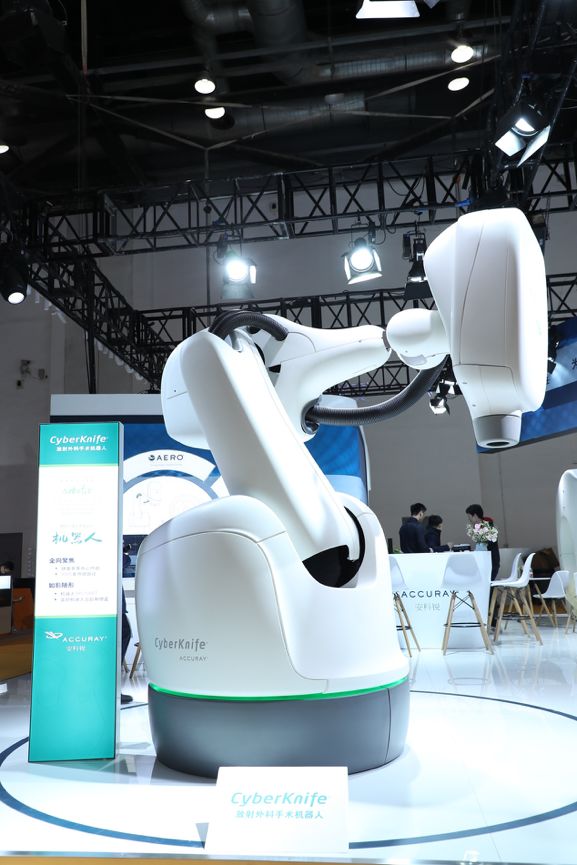 與此同時,安科銳旗下的CyberKnife®射波刀放射外科手術機器人系統(tǒng)也在本屆CHINA MED上進行了展示。作為目前世界上唯一的一款智能機器人放射治療設備,CyberKnife®射波刀適用于全身以及顱內(nèi)的放射外科治療,可以實時在放療過程中對腫瘤靶區(qū)進行如影隨形的跟蹤和修正,治療精度達到亞毫米級,在進行高效治療的同時,也能保護好正常的組織,為腫瘤患者提供全面、快捷、高效的精準腫瘤放射外科/放療解決方案。