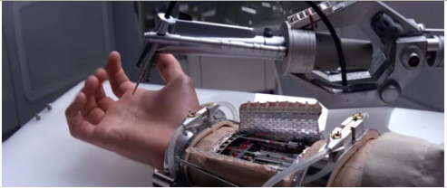影視作品《星球大戰—帝國反擊戰》中,盧克·天行者斷臂后曾安裝過一款高科技假肢,圖片呈現的是機器對手臂進行意識感知測試,而現在它終于成真了