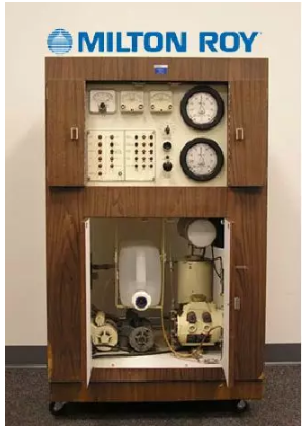 世界上第一臺透析液配比系統(tǒng)是在1963年,由伊利諾伊大學化學博士阿爾伯特·拜波(Albert Babb)發(fā)明,他采用了世界上第一臺計量泵的發(fā)明者,同時也是全世界最大的計量泵制造商Milton Roy的泵來為透析液配比。他將原型機命名為Mini-1,其最大的特點是可作為便攜式設備由單人使用。