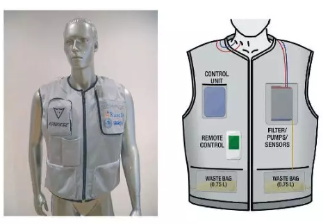 時間來到1975年,日本人江良首先攻克了這一課題,他利用TM-101數(shù)字溫度計和REDY透析液吸附再循環(huán)裝置,制成40х35х15cm,9.2公斤重的攜帶型人工腎。1978年時,這一設計已經發(fā)展成一種成熟的茄克式人工腎系統(tǒng),總重量4.5公斤的夾克衫上集成了透析液、血泵、吸附劑和透析器,并可以連續(xù)工作。
