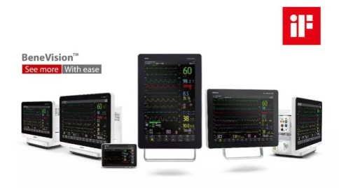 其中BeneVision N系列屬于高端監護儀,是邁瑞近年來的主推產品,主打“瑞智庫、瑞智簡、瑞智聯”,其監護儀的屏幕是業內唯一的支持橫屏和豎屏兩種方式,既能夠滿足豎屏下較大的監測值顯示, 又兼顧了在橫屏下展現更長的波形。BeneVision N系列監護儀的監測參數除了ECG、RESP、TEMP、SpO2、PR、NIBP基礎六項,BeneVision N系列監護儀還可測量有創血壓(IBP)、成人心排量(C.O.)、二氧化碳(CO2)、氧氣(O2)、麻醉氣體(AG)、電阻抗心動描記(ICG)、呼吸力學(RM)、連續心排量(CCO)等,功能非常強大。其次,該系列監護儀的整體設計非常時尚、美觀,曾獲得過有著“設計界奧斯卡”之稱的iF大獎,屏幕最大尺寸為22寸(BeneVision N22),最小的監護儀的整機只要巴掌大小(BeneVision N1),外形雖小,卻是業內集成度最高的智能轉運監護儀。