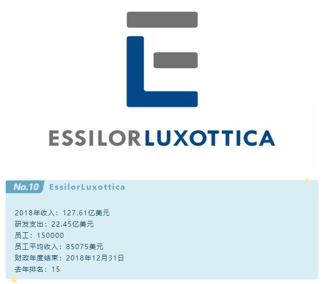 EssilorLuxottica于去年10月與法國鏡片專家Essilor和意大利眼鏡制造商Luxottica合并后成立,以540億歐元的價格成為全球最大的眼鏡制造商。通過并購從全球醫療器械企業第15位一舉躍進十強席位。