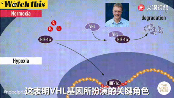 Ratcliffe 與 Semenza 一同在探究 EPO 基因的調控,癌癥研討者 William Kaelin教授正在研討一種遺傳綜合征,即 von Hippel-Lindau ?。╒HL ?。?。這種遺傳疾病會導致遺傳性 VHL 驟變的家庭罹患某些癌癥的危險急劇增加。他發現在腎癌患者中抑癌基因VHL的丟失,導致腎內會長出很多血管——實際上就是由于HIF積聚造成的。而VHL基因就是負責來清除HIF蛋白的關鍵分子。