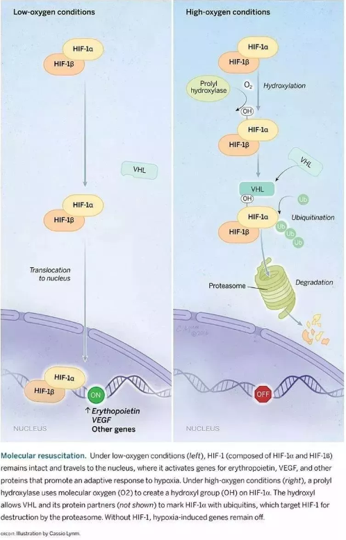 據悉,在缺氧條件下,本來被敏捷降解的 HIF-1α 一般不會被持續降解。