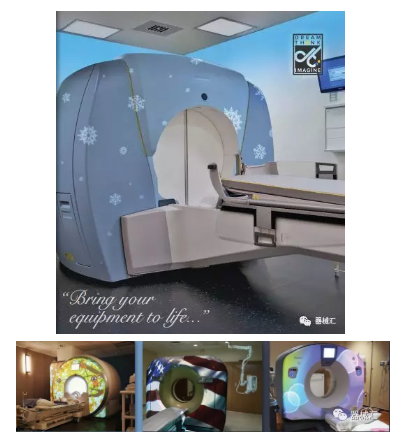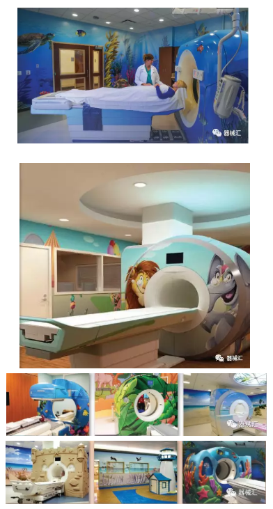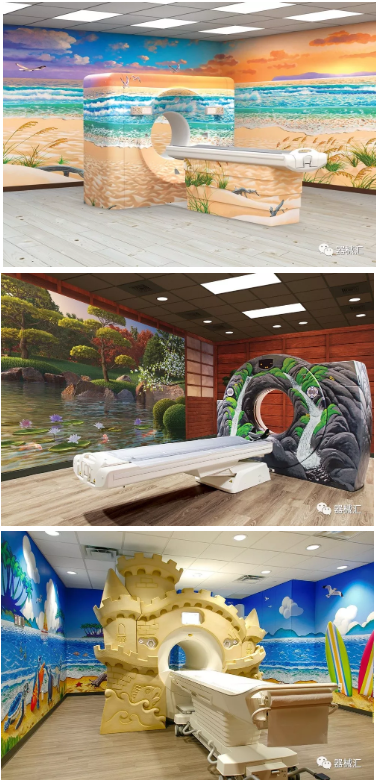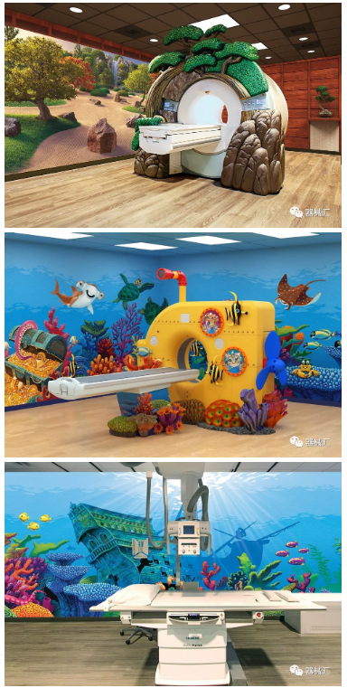 Dream Think Imagine(DTI)和Character Farms都是提供此類產服務的公司,他們專門制作3D外觀,像皮膚一樣包裹在影像設備上,把設備變成幾乎認不出來的物品。無論是為兒童建造的城堡主題,還是為成人營造的顏色和照明交互的良好氛圍,都可以幫助患者在醫療檢查中保持更為平靜的情緒。