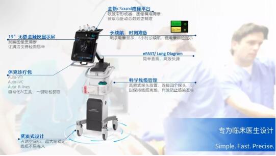 而對于急診、重癥、麻醉等臨床領域的醫生來說,雖然采用超聲圖像確診循環系統和呼吸系統的需求越來越高,但學習超聲設備的操作和圖像確診是一個長期的過程。更詳盡、更細分、更專業的臨床超聲設備也是這種需求增長的產物,同時也是精準影像發展和精準醫療實施的必由之路。