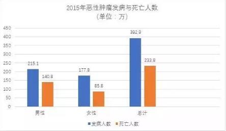 據國家癌癥中心2019年1月發布的中國癌癥報告統計,惡性腫瘤死亡占居民全部死因的23.91%,且發病率連續十幾年呈持續上升趨勢,2015年(全國腫瘤中心登記數據通常滯后3年,2015年為最新的數據)惡性腫瘤發病約392.9萬人,死亡約233.8萬人,平均每天有約1萬人確證為惡性腫瘤,每分鐘有7.5人確診,環比過去10年數據,惡性腫瘤發病率每年有3.9%增幅,死亡率有2.5%增幅。