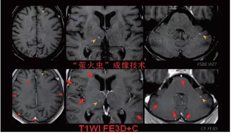此技術主要用于神經系統惡性腫瘤,以及其他腫瘤腦轉移瘤篩查。傳統情況下做腫瘤腦轉移篩查,很容易漏掉5mm以下小病灶,臨床發現后干預治療比較晚,要實現2mm高空間分辨率和超薄層全腦掃描在保證信噪比的情況下需要很長時間大概十多分鐘,而且薄層增強序列顱內血管呈高亮信號,會干擾顱內小病灶的觀察,血管和小病灶區分困難。佳能”螢火蟲”成像技術既可以實現高空間分辨率和超薄層(最薄可實現0.2mm)全腦掃描,掃描時間短,2-3分鐘即可實現全腦3D掃描,同時避免了血管高亮信號的干擾,對顱內原發或繼發的微小腫瘤檢查有重大意義。“螢火蟲”成像技術具有磁敏感效應,對于亞急性血敏感敏感,可以區分出血和強化的腫瘤。