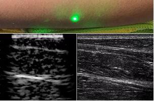 研究人員用一種激光裝置測試了這個想法,該裝置使用一個波長為1,550納米的脈沖激光來產生聲波,并使用第二個連續激光,調諧到相同的波長以遠程檢測反射的聲波。第二個激光器是靈敏的運動檢測器,可測量聲波從肌肉,脂肪和其他組織反射回來而引起的皮膚表面振動。反射的聲波產生的皮膚表面運動會導致激光頻率發生變化,這種變化可以測量。通過機械掃描人體上的激光,科學家可以獲取不同位置的數據并生成該區域的圖像。
