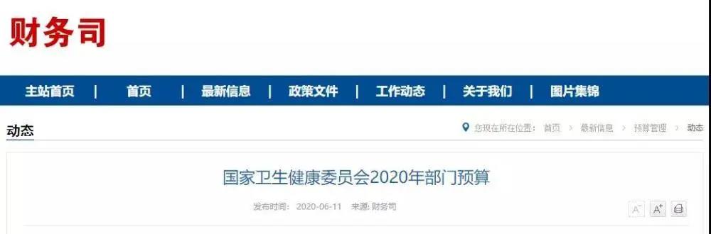 近日,國家衛健委財務司最新發布了國家衛生健康委員會2020年部門預算,對各個部門2020年的收支情況進行了說明。