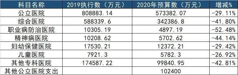 值得注意的是,在一般公共預算支出表中,國家衛健委明確,2020年公立醫院的預算為573382.07萬元,同比2019年的執行數減少了29.11%。