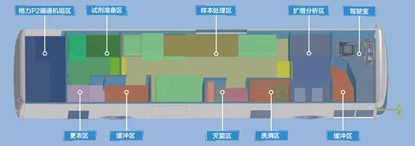 據公告顯示,圣湘生物移動P2+核酸檢測車長12米,按照生物安全二級以上(P2+)實驗室標準打造,設置了試劑準備區、樣本處理區、擴增分析區和滅菌區等四個主要區域。單臺車的檢測能力可達5萬人份/天(10混1),突破了以往檢測車的人次上限,并且可以隨到隨檢,大大縮短了民眾到醫院或核酸檢測點的距離,減少了就診過程中對人群的接觸。