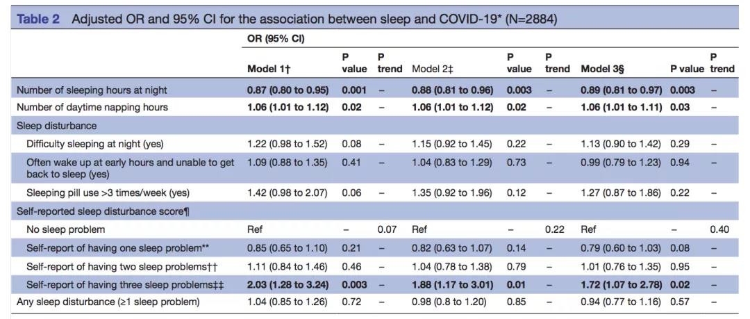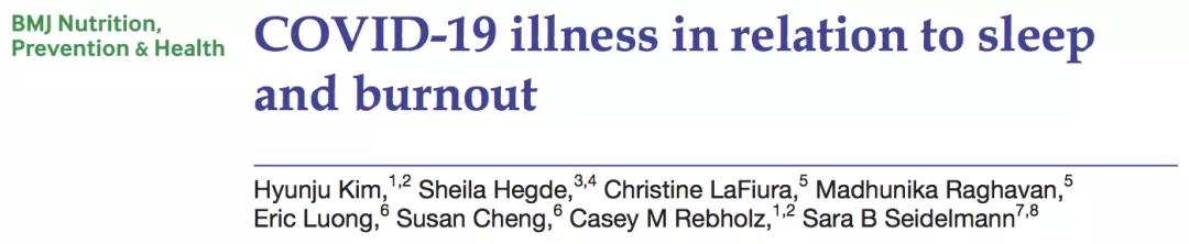 綜上,夜間睡眠不足,嚴重的睡眠問題和高度的職業倦怠可能是一線醫護人員感染COVID-19的高危風險因素。 因此,如果出現職業倦怠,則需要高質量的睡眠,以防止倦怠及其后果。 所以,有必要采取措施,更合理地評估醫護人員工作壓力,優化輪休制度,保證職業安全。 原始出處Hyunju Kim1,2, Sheila Hegde3,4, Christine LaFiura5, Madhunika Raghavan5, Eric Luong6, Susan Cheng6, Casey M Rebholz1,2 and Sara B Seidelmann7,8.COVID-19 illness in relation to sleep and burnout, BMJ Nutrition Prevention & Health, DOI: 10.1136/bmjnph-2021-000228 來源:梅斯醫學綜合報道