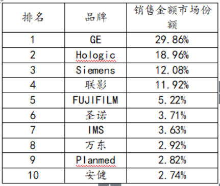 銷售金額:GE和Hologic 依然穩如泰山