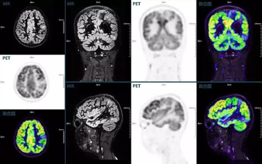 (結節性硬化,MR DIR序列清晰顯示腦皮層病理改變,PET顯示了病灶區域FDG的低濃聚。PET/MR融合顯像同時提供了結構異常改變和功能變化的信息。)