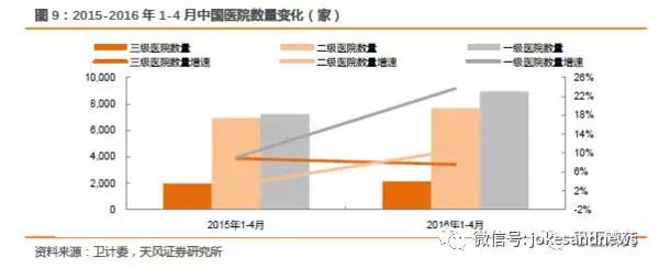 注:2015年醫(yī)院數(shù)量衛(wèi)計(jì)委只有1-11月數(shù)據(jù),但不影響整體趨勢和判斷。