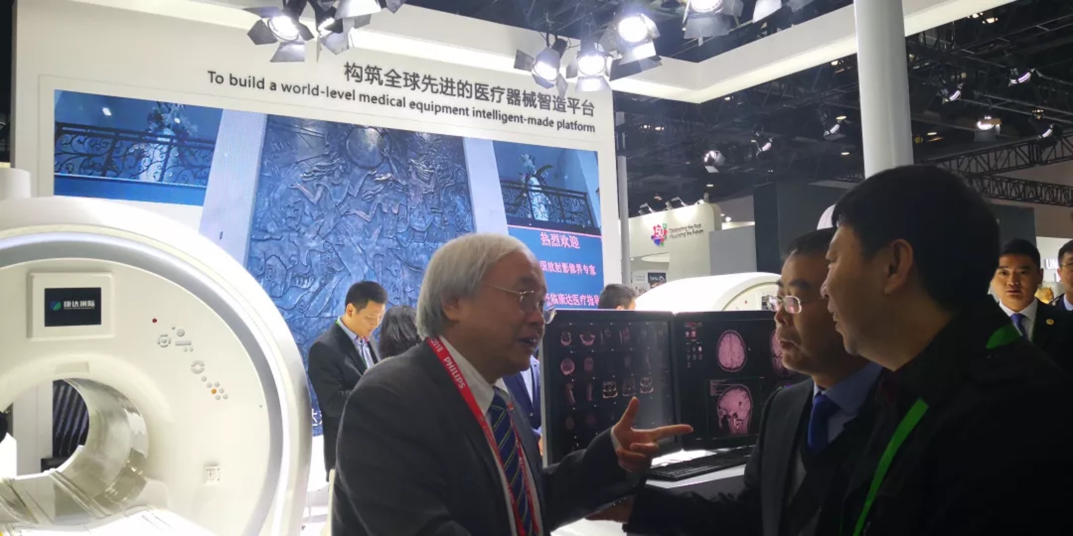 中國放射學家、中華醫學會放射學分會主任委員、北京協和醫院放射科主任金征宇一行也特意來到了康達洲際展臺。金征宇教授在聽取了康達的工作人員對康達洲際1.5T磁共振等一系列產品的介紹后,對康達洲際在產品的研發和創新上給予了高度肯定。