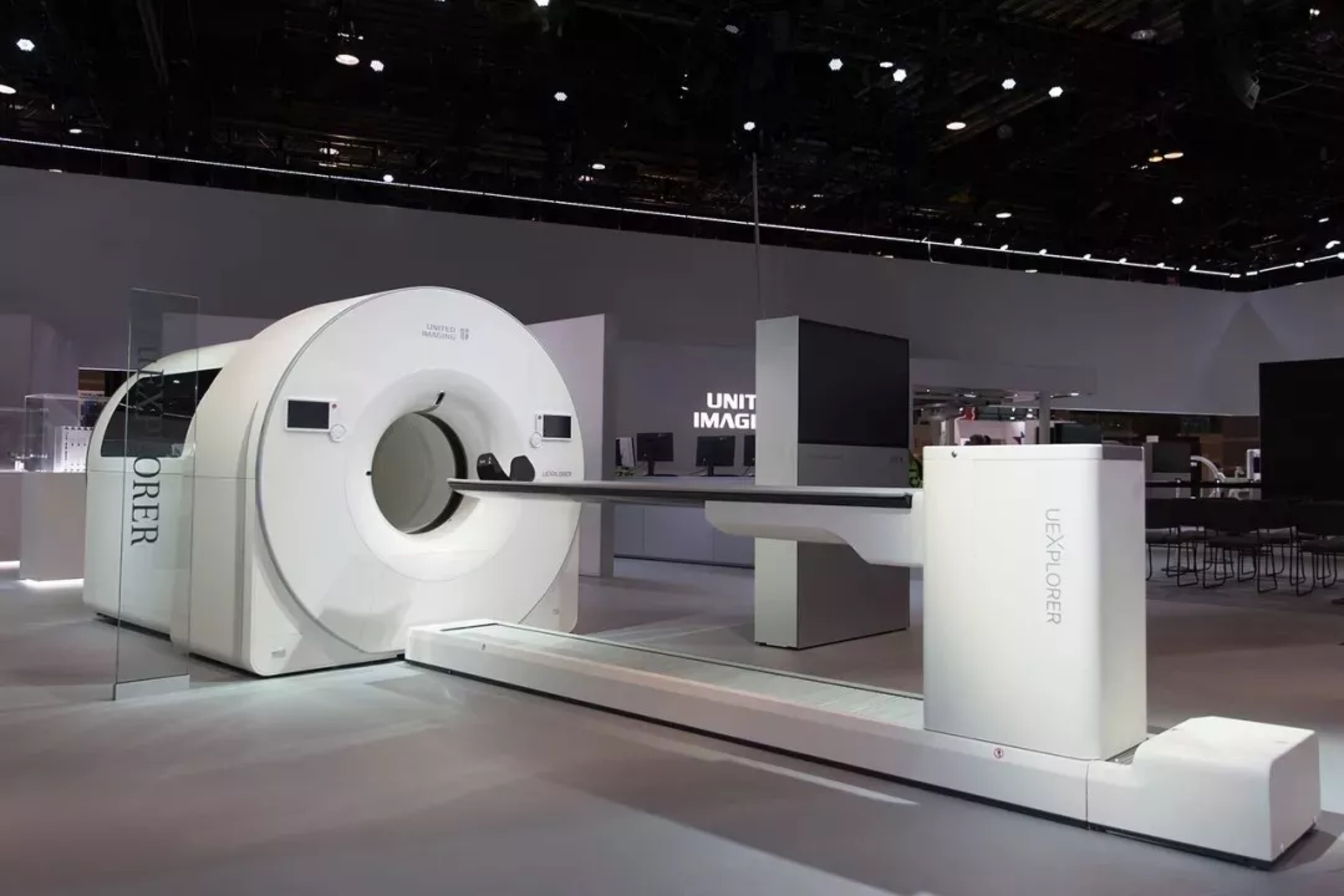聯影醫療作為中國大型影像設備的代表,其產品同樣驚艷全球。本屆RSNA上,聯影發布了世界首臺全景動態掃描PET-CT uEXPLORER探索者,這是人類第一臺能夠實時動態監測藥物在人體全身代謝分布的尖端設備,也是人類第一次實現了人體全身動態PET-CT成像“電影”,該設備首次實現了4D全景成像,實時全身動態代謝過程成像,精細結構成像與超清功能成像兼得。此外,聯影醫療還發布了“時空一體”超清TOF PET/MR、中國首臺超高端640層CT、一體化CT-linac、uAI聯影智能等設備及系統。