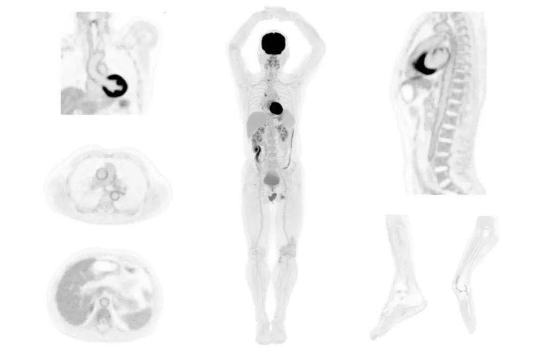 注射總劑量為6.9mCi,注射后10小時(shí),基于uEXPLORER探索者掃描14分鐘的圖像