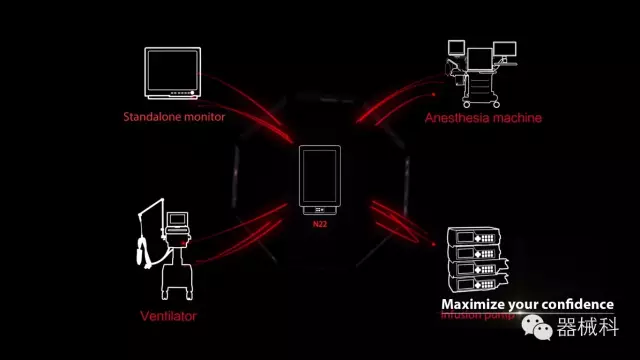 在N22監護儀上可以查看其它相關設備的信息,這是大物聯網的前奏?。▽Α叭f物互聯”感興趣的童鞋們還可以在網上圍觀一下OMAHA——開放醫療與健康聯盟的最新進展......)!但是現在的形式很難讓臨床科室在信息采集和處理中以床旁監護為中心,后面會講到。