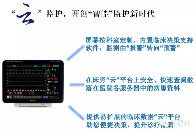 在技術與市場都相對競爭較充分的背景下,以“互聯網+”為創新驅動力的革命浪潮自然也燒到了傳統監護市場——2010年左右飛利浦的新款MX系列跨平臺云監護產品就已經在美國上市,雖然此產品系列在中國2013年才上市(首先引入了高端機型MX600/700/800,今年又引入MX450/500/550中端機型,準備全面替代MP系列產品)。