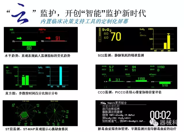這兩款產品的生命體征監測功能上都非常全面,基本六參加上那些高級的應用,如有創壓力、呼末二氧化碳、心排量、麻醉氣體、呼吸力學、BIS、肌松監測等等也基本都有了,基本上是現在市場上參數最全的生命體征監護機型,完全可以滿足高級臨床的應用。