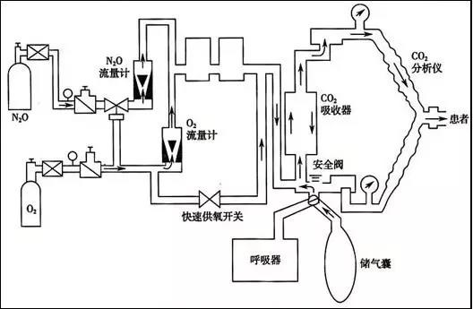 其主要有供氣裝置、蒸發器、呼吸回路、二氧化碳吸收裝置、麻醉呼吸機、麻醉廢氣清除系統等組成。