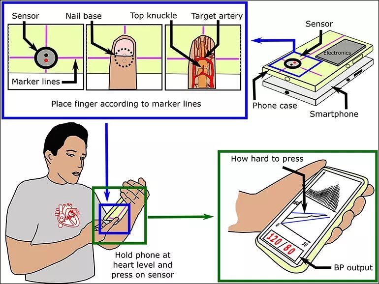 目前這項研究有了新的進展,來自密歇根州立大學和馬里蘭大學的研究人員發明了一種可以集成到智能手機的血壓傳感器,只需按壓指尖即可完成血壓測量。