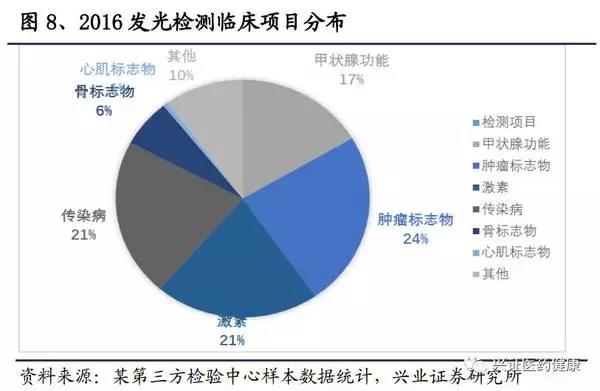 在發光檢驗終端分布中,有醫院、血站、獨立實驗室、體檢中心和防疫站等,90%以上在醫院。
