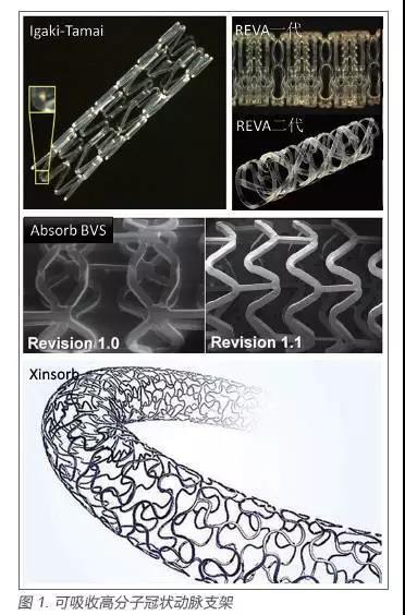 現階段開發應用的較大的產品有:日本Igaki Medical Planning 公司研發的Igaki-Tamai(PLLA)支架,美國Abbott Vascular 公司的BVS(PLLA)血管支架,Reva Medical 公司研發的REVA(PC)支架,以及我國山東華南生物科技有限公司的Xinsorb 支架(圖1)。