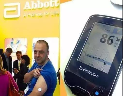 雅培公司的Free Style Libre Flash血糖監測儀是目前體積最小型的穿戴式血糖監測設備,血糖檢測儀由一個兩歐元大小的一次性圓形傳感器組成,通過一個長 5 毫米、寬 0.4 毫米的微型針頭和小膠貼固定于上臂外側,該傳感器具有防水功能,持續時間長達 14 天,讀數時,將配套的手持閱讀器置于傳感器上方,即可在一秒鐘內掃描獲得血糖測試結果,掃描可以隔著衣服進行,閱讀器中的血糖數據可保留 90 天。由于讀數時需要用手持閱讀器掃描傳感器,導至這款監測儀無法實現血糖的連續監測,也無法提供預警和夜間讀數。