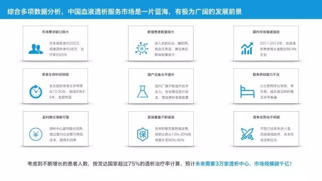 申請(qǐng)營(yíng)業(yè)執(zhí)照與醫(yī)保接入,是政策領(lǐng)域最值得關(guān)注的兩個(gè)問(wèn)題。好在國(guó)家目前鼓勵(lì)連鎖化、集團(tuán)化獨(dú)立透析中心的建設(shè),各地政府應(yīng)該很快會(huì)出臺(tái)相應(yīng)的扶持政策。