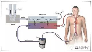 葉克膜其實很簡單,就是靜脈血引流出來,經過一個血液泵(人工心臟),再經過一個氧合器(人工肺臟),送回身體。它用來暫時取代心肺功能。