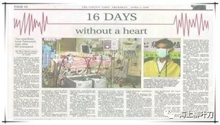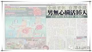 9.這是另外一個案例,報紙寫“全球首例,臺灣奇跡,男無心臟活16天”。