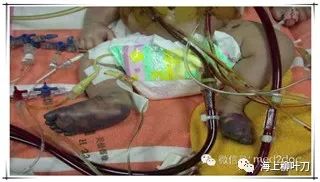 這是一個出生一個半月、先天性心臟病的嬰兒,心臟手術以后,沒有辦法脫離心肺機,所以就裝了葉克膜。