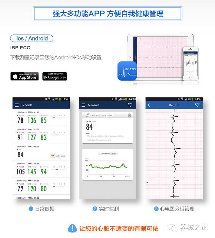 這款多功能高顏值設備,能夠讓心臟的不適變得有據可依,有圖可看——移動設備可隨時查看心電圖等監測數據。